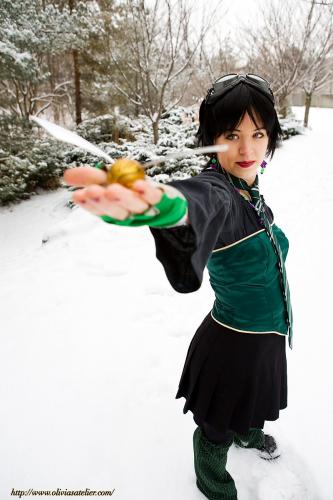 Not so much a costume as…clothes that may or may not be inspired by Slytherin. I don’t know. I made the corset thing, leg warmers and jewelry though. So it’s not entirely closet cosplay.